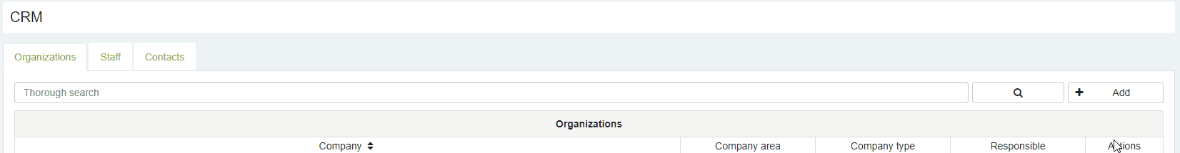 Organizations tab displays list of added organizations. Through this tab it is possible to search for the required organization, add new organizations, edit existing organization data or delete them in case all the required access rights are granted to the respective business user.