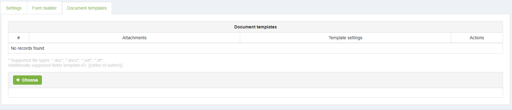 "+Choose" one document template or several document templates to add it / them to the document form.