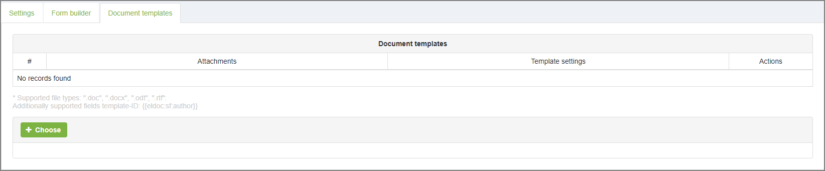 "+Choose" one document template or several document templates to add it / them to the document form.