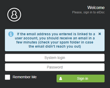 - elDoc deployed onsite usually has address like: https://eldoc.domain.com (where domain.com - is the domain of your organization), or ask your internal IT team to provide you with URL-address to access elDoc;