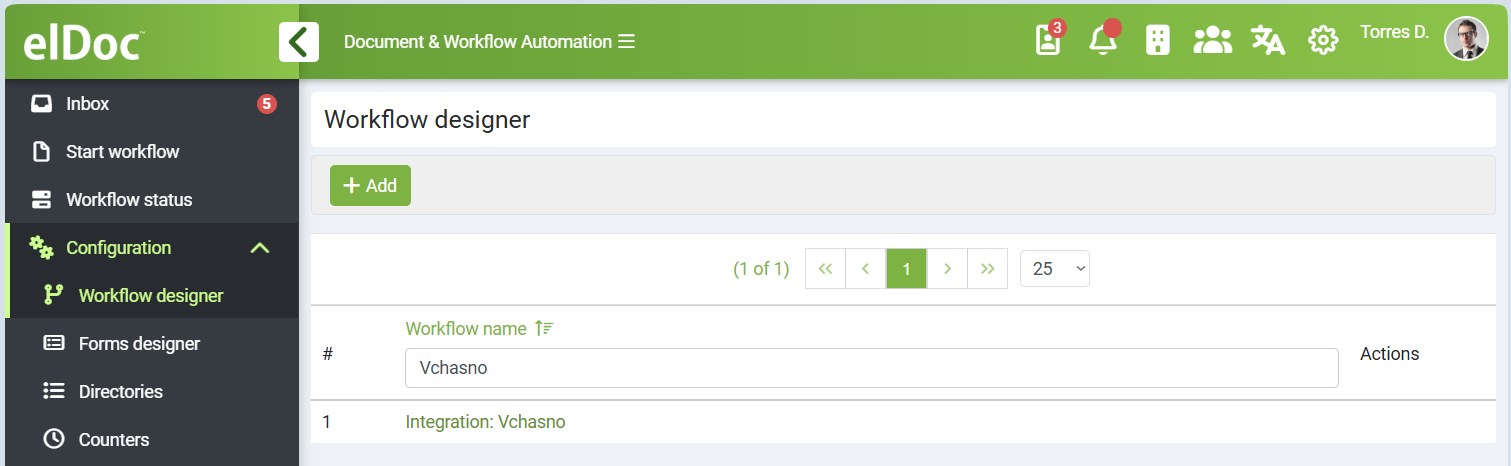 Upon enabling the Vchasno integration, the system creates a dedicated workflow specifically designed for this integration.