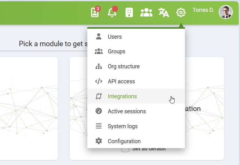 To open this page, navigate to: System Settings → Integrations